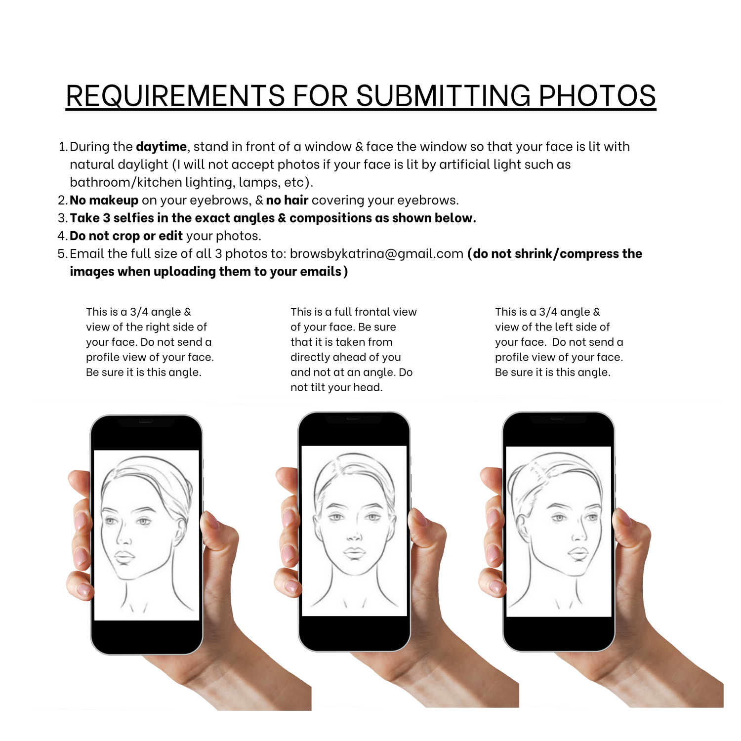 I’ll draw my best recommendation(s) and style(s) for your new brows on a photo that you send me, and I’ll explain my reasonings for the drawing(s) to complete your free consultation and drawing via email 💞