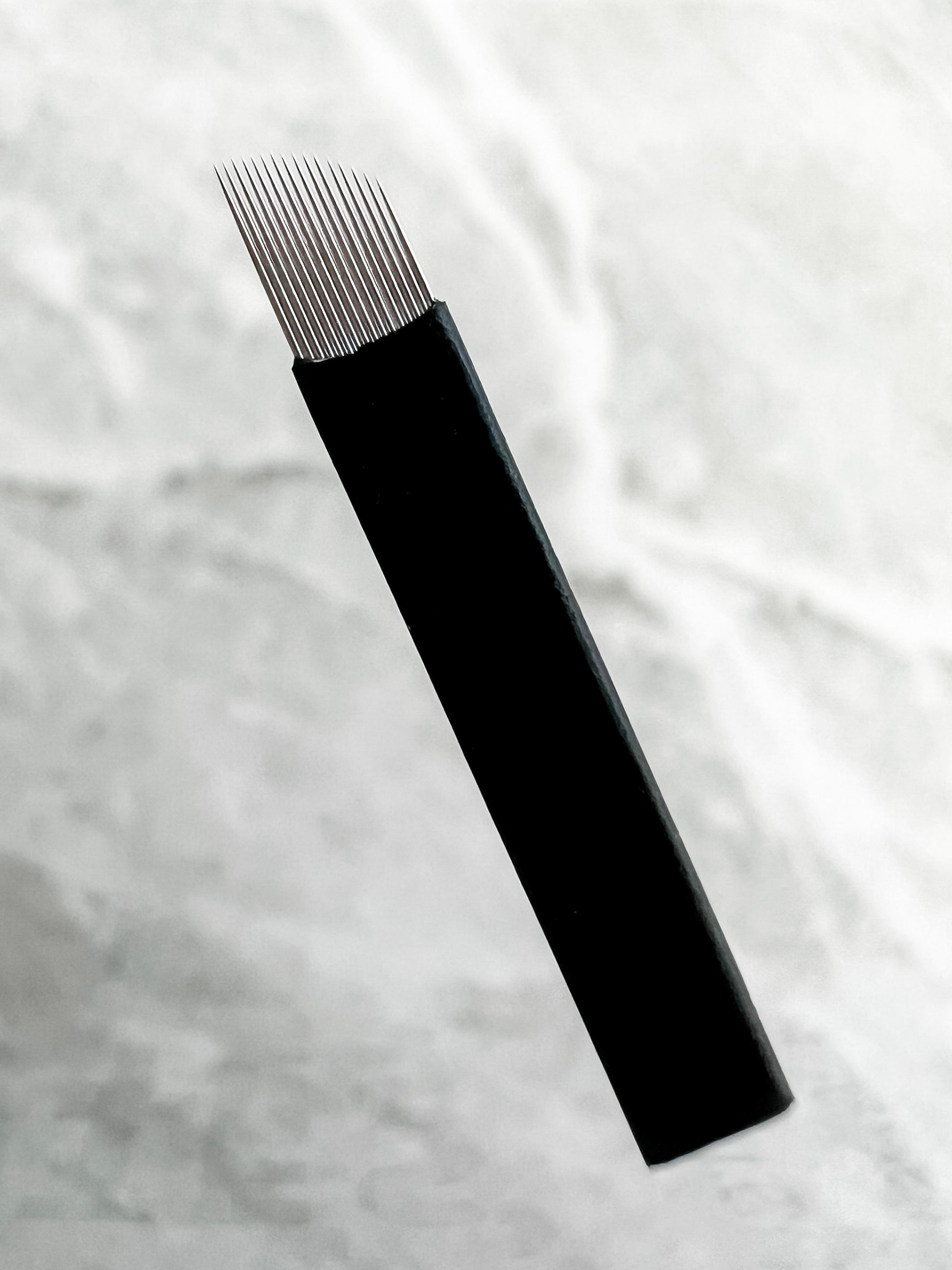 This microblade is a flex blade, meaning the needles in the blade are bound together by synthetic material, allowing the artist more give than that of a hard blade.